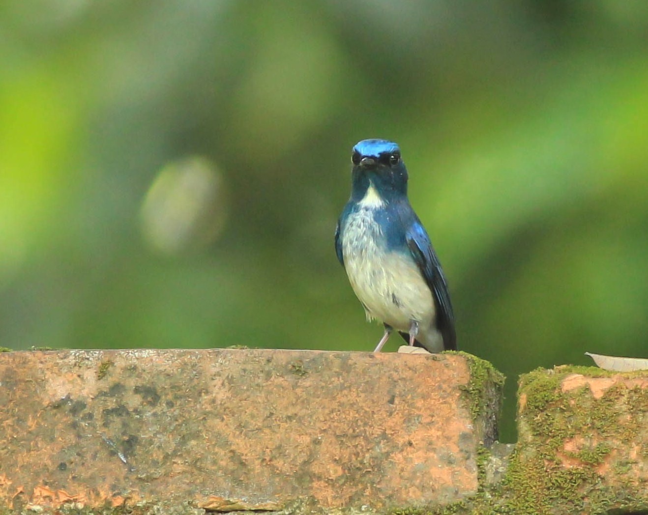 An interesting male Hainan Blue Flycatcher with a white throat-triangle