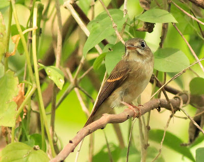 1cy Taiga Flycatcher with the beak wide open (still hot here).